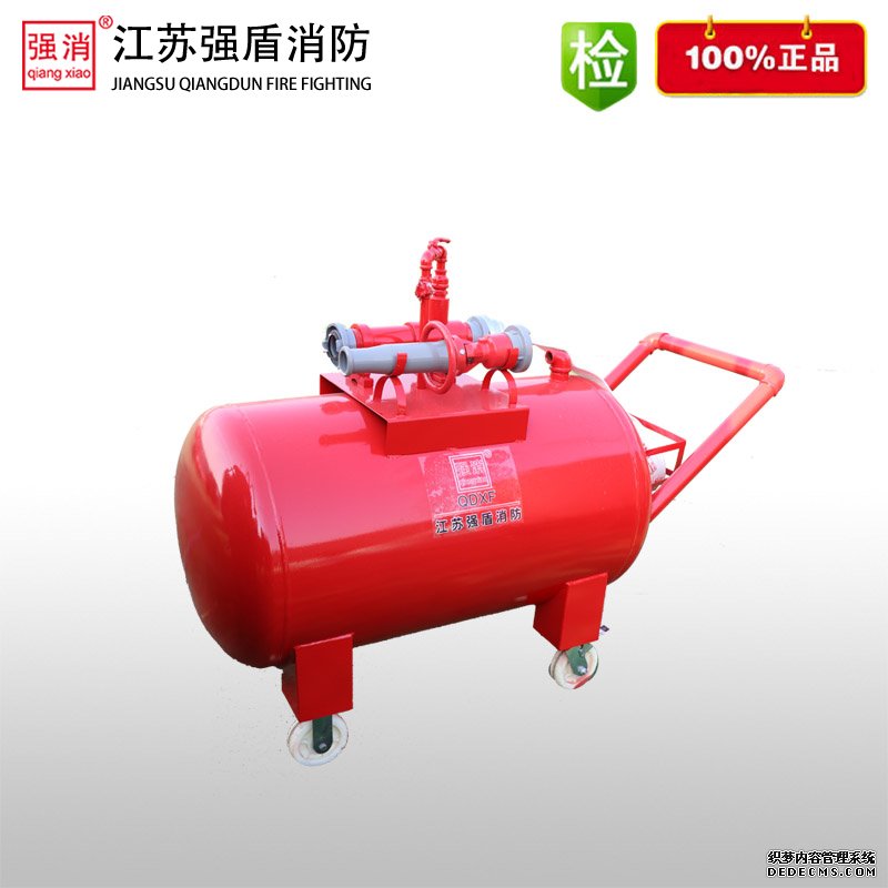 使用这样的移动式泡沫罐,能够大范围的进行火势扑灭。同时,其有滑轮,移动起来比较方便。